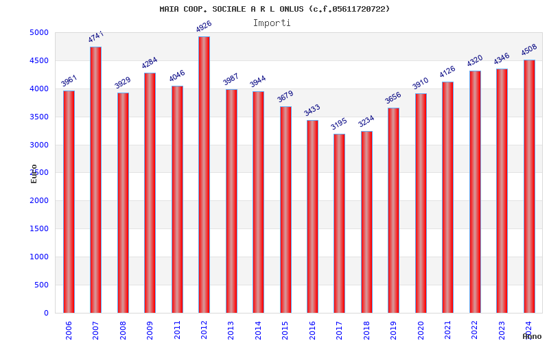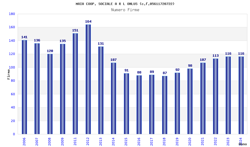 | Anno | Firme | Importi | Media | Naz. | Reg. | Prov. | Comu. |