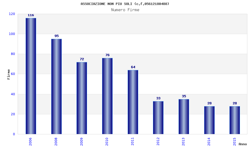 | Anno | Firme | Importi | Media | Naz. | Reg. | Prov. | Comu. |