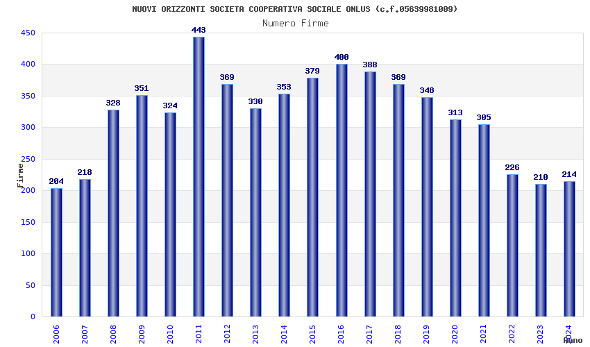 | 2011 | 443 | 14.343,16 | 32,38 | 2.431 | 410 | 390 | 361 |
