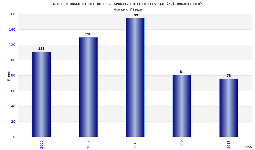 | Anno | Firme | Importi | Media | Naz. | Reg. | Prov. | Comu. |