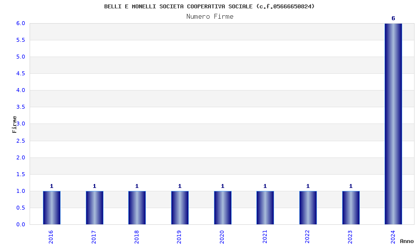 | Anno | Firme | Importi | Media | Naz. | Reg. | Prov. | Comu. |