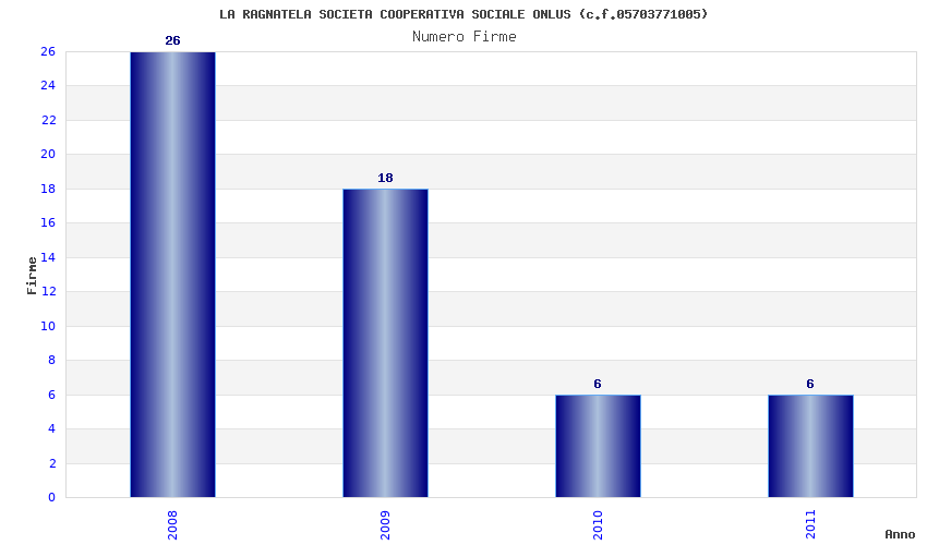 | Anno | Firme | Importi | Media | Naz. | Reg. | Prov. | Comu. |
