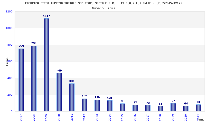 | Anno | Firme | Importi | Media | Naz. | Reg. | Prov. | Comu. |