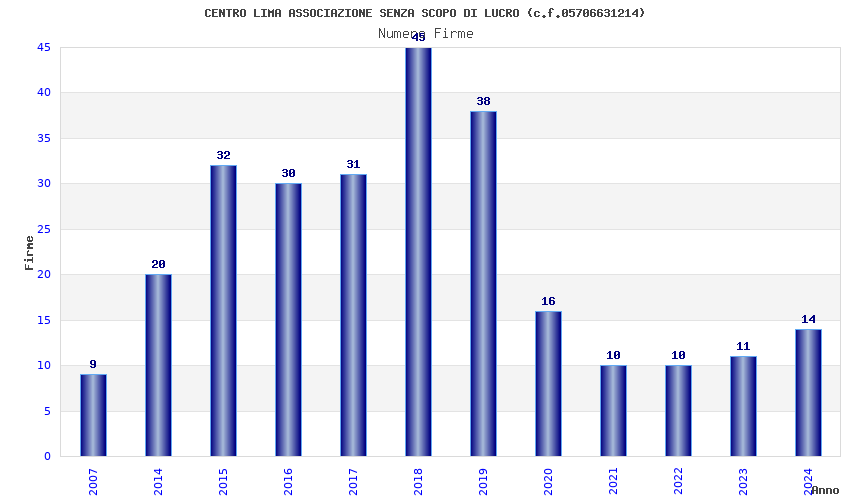 | Anno | Firme | Importi | Media | Naz. | Reg. | Prov. | Comu. |