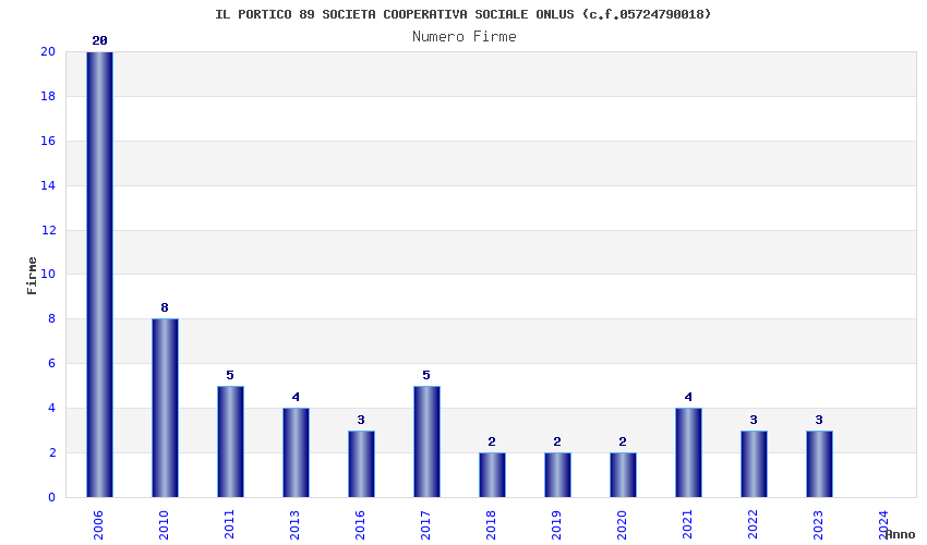 | Anno | Firme | Importi | Media | Naz. | Reg. | Prov. | Comu. |