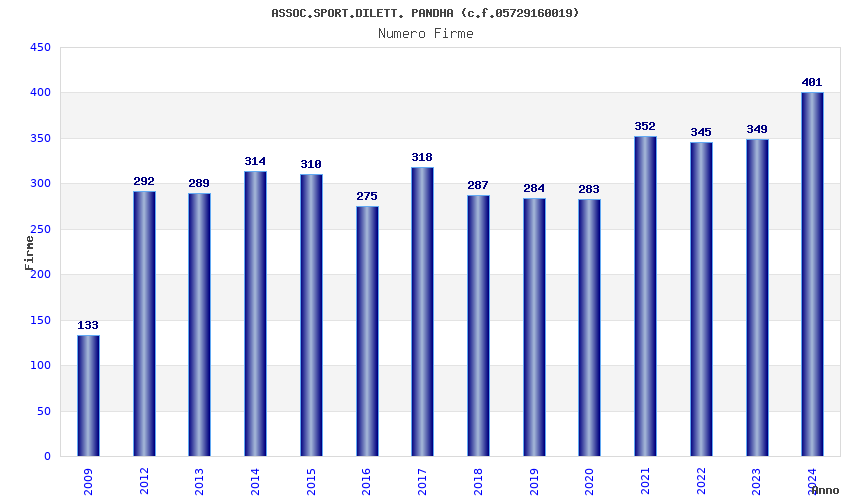 | 2009 | 133 | 5.021,85 | 37,76 | 8.695 | 669 | 371 | 219 |