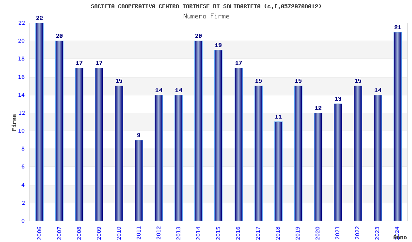 | Anno | Firme | Importi | Media | Naz. | Reg. | Prov. | Comu. |