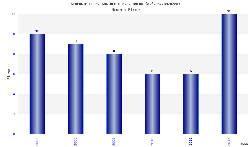 | Anno | Firme | Importi | Media | Naz. | Reg. | Prov. | Comu. |