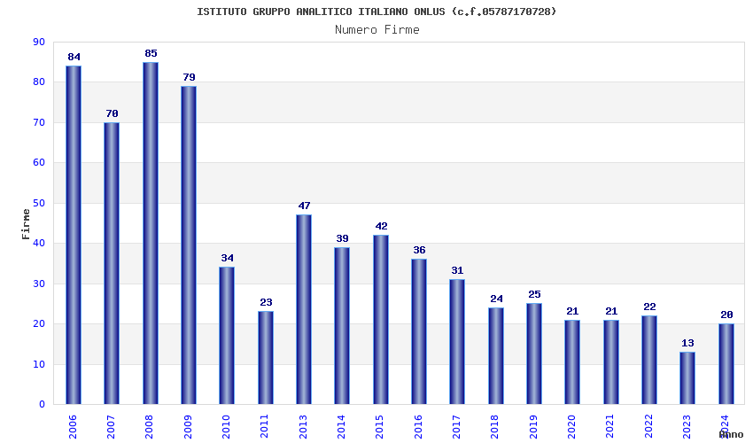 | Anno | Firme | Importi | Media | Naz. | Reg. | Prov. | Comu. |