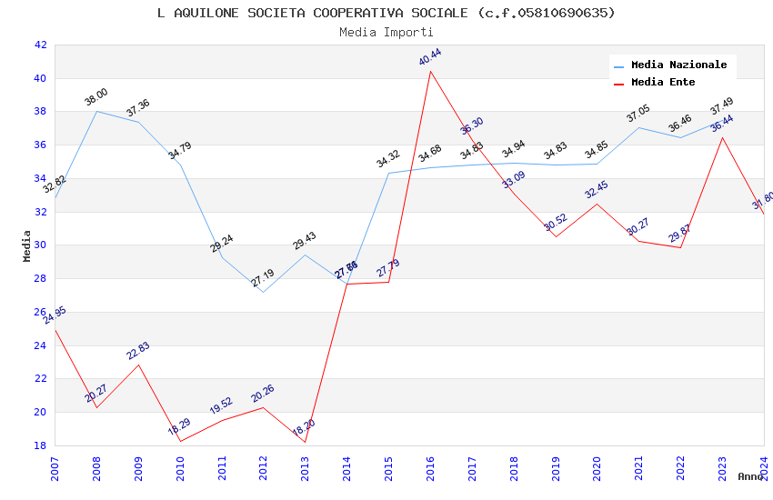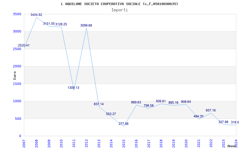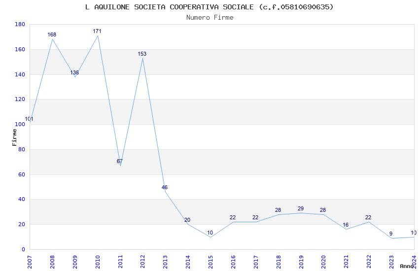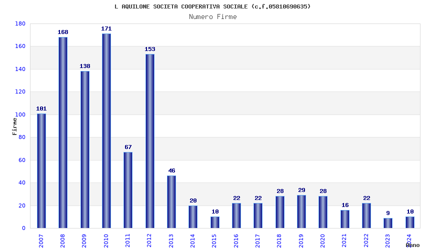 | Anno | Firme | Importi | Media | Naz. | Reg. | Prov. | Comu. |