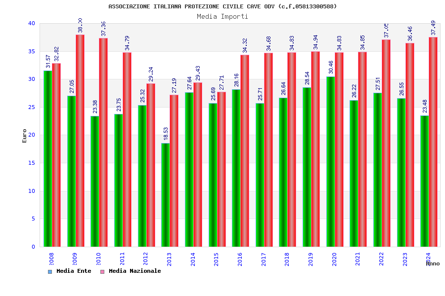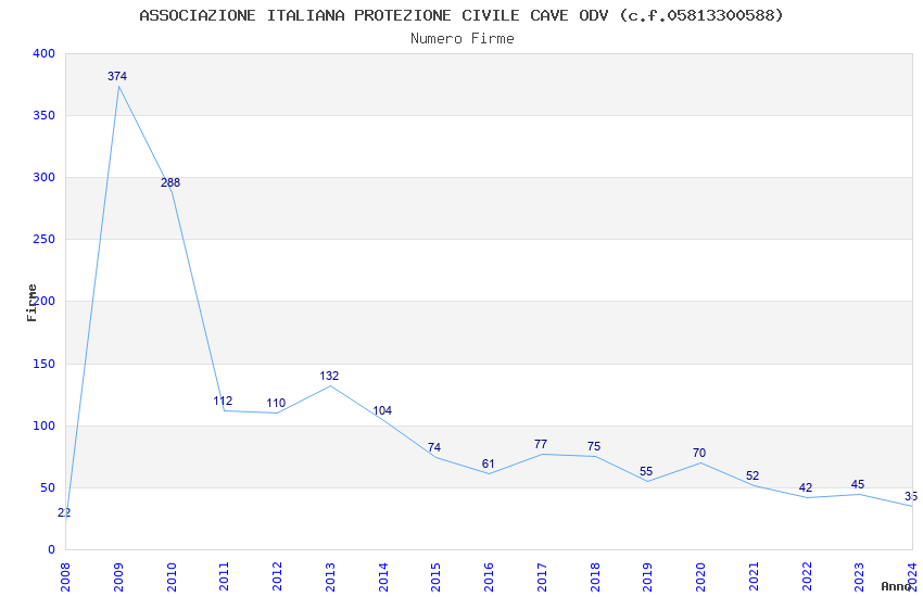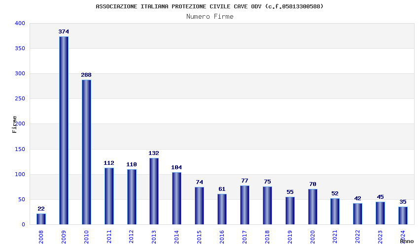 | Anno | Firme | Importi | Media | Naz. | Reg. | Prov. | Comu. |