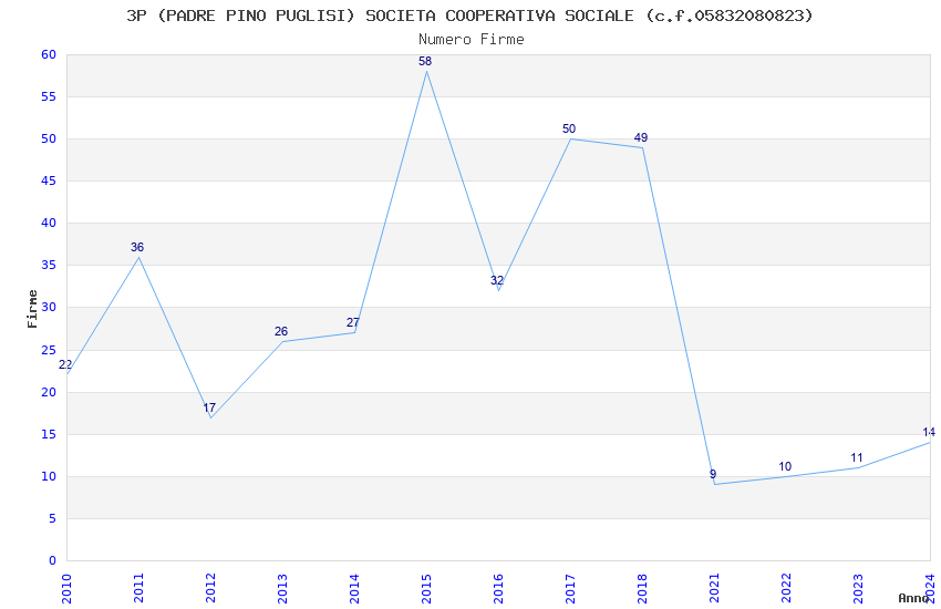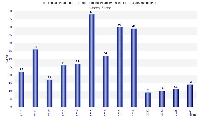 | Anno | Firme | Importi | Media | Naz. | Reg. | Prov. | Comu. |
