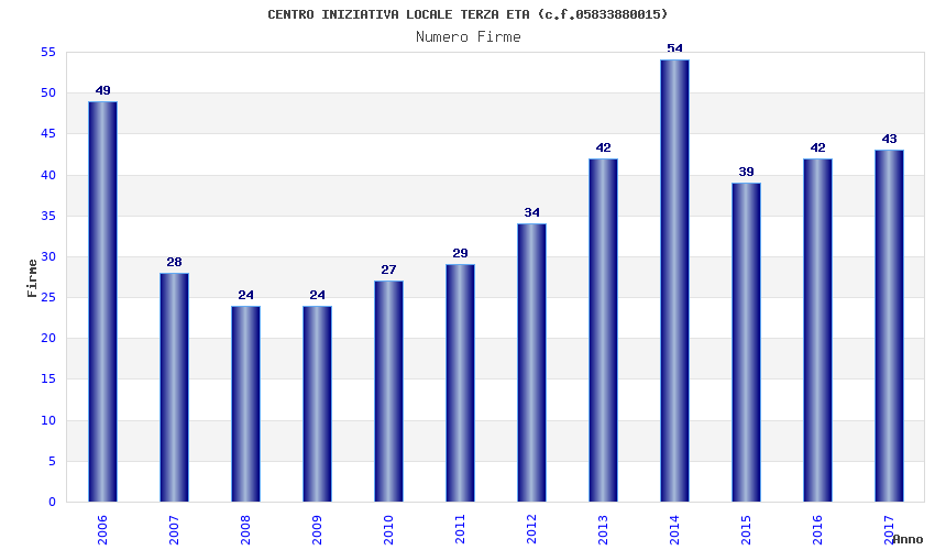 | Anno | Firme | Importi | Media | Naz. | Reg. | Prov. | Comu. |