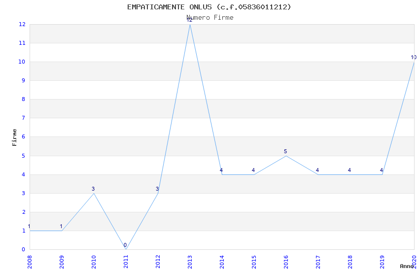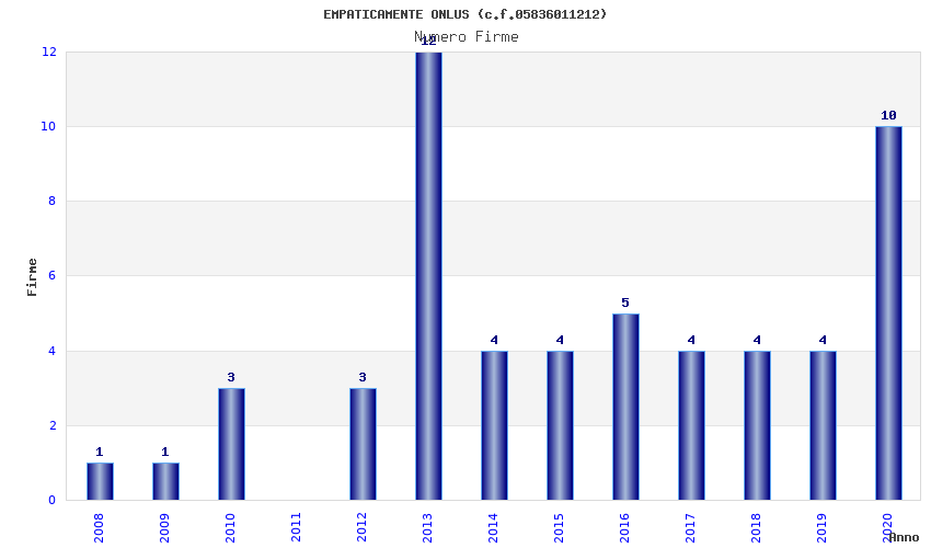 | Anno | Firme | Importi | Media | Naz. | Reg. | Prov. | Comu. |