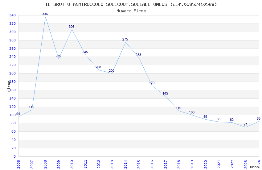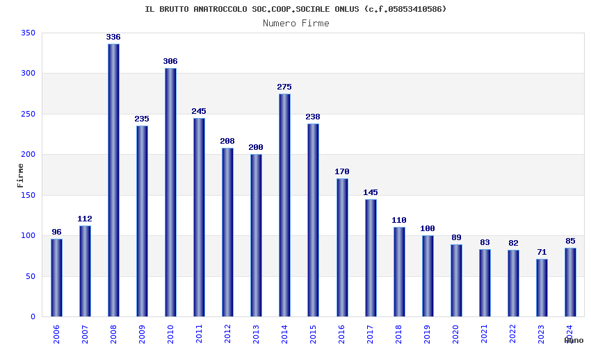 | Anno | Firme | Importi | Media | Naz. | Reg. | Prov. | Comu. |
