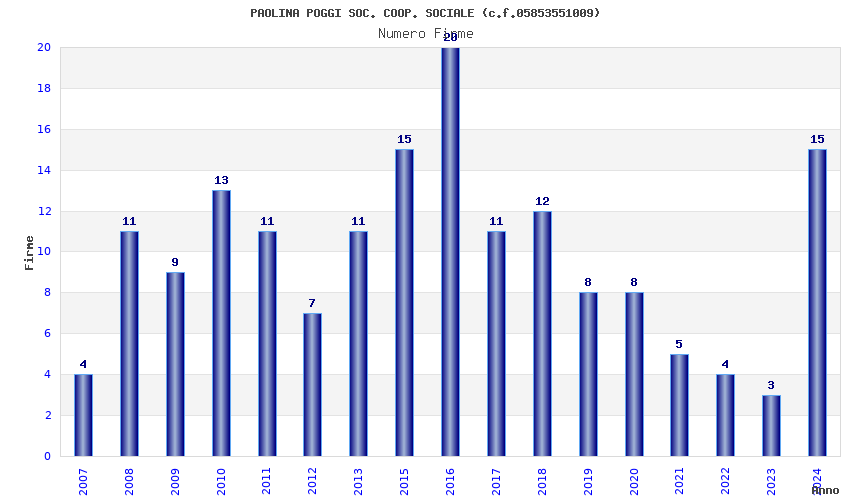 | Anno | Firme | Importi | Media | Naz. | Reg. | Prov. | Comu. |
