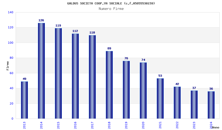 | 2014 | 126 | 4.540,13 | 36,03 | 11.836 | 2.742 | 1.102 | 723 |