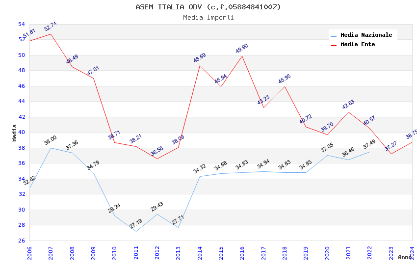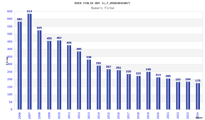 | Anno | Firme | Importi | Media | Naz. | Reg. | Prov. | Comu. |