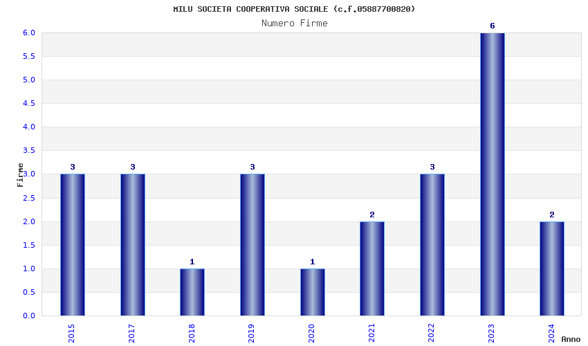 | Anno | Firme | Importi | Media | Naz. | Reg. | Prov. | Comu. |