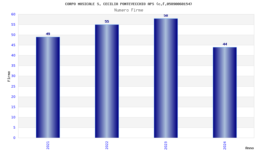 | Anno | Firme | Importi | Media | Naz. | Reg. | Prov. | Comu. |