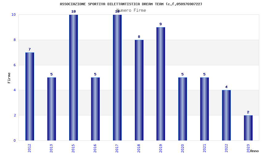 | Anno | Firme | Importi | Media | Naz. | Reg. | Prov. | Comu. |