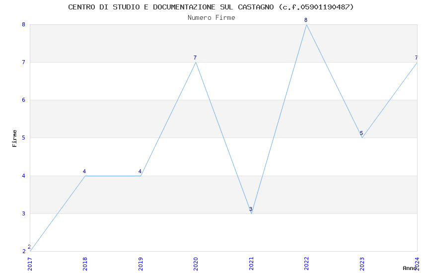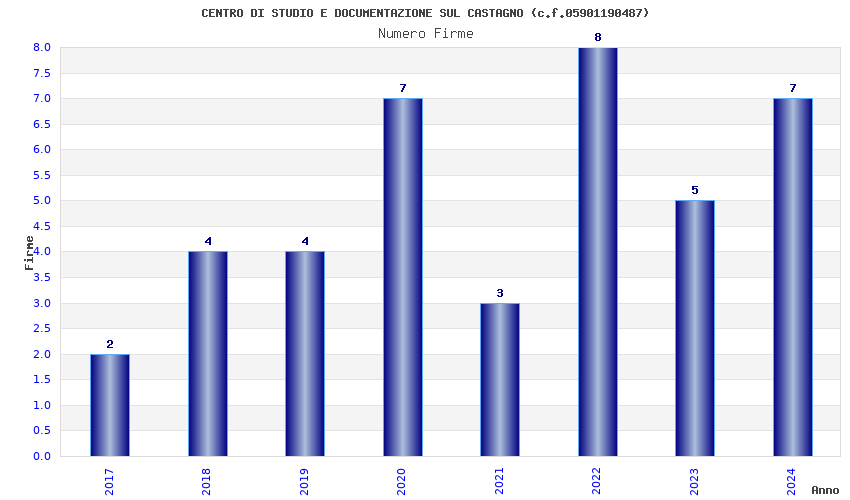 | Anno | Firme | Importi | Media | Naz. | Reg. | Prov. | Comu. |