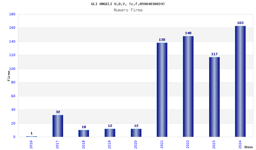| Anno | Firme | Importi | Media | Naz. | Reg. | Prov. | Comu. |