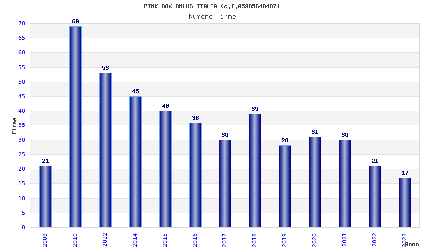 | Anno | Firme | Importi | Media | Naz. | Reg. | Prov. | Comu. |
