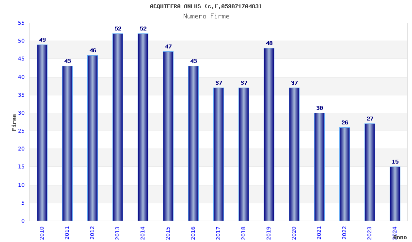 | Anno | Firme | Importi | Media | Naz. | Reg. | Prov. | Comu. |