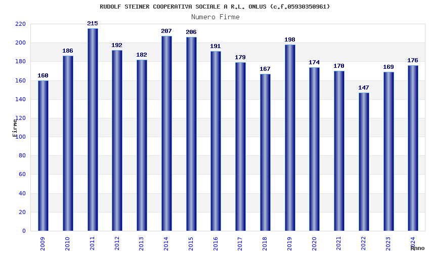 | Anno | Firme | Importi | Media | Naz. | Reg. | Prov. | Comu. |