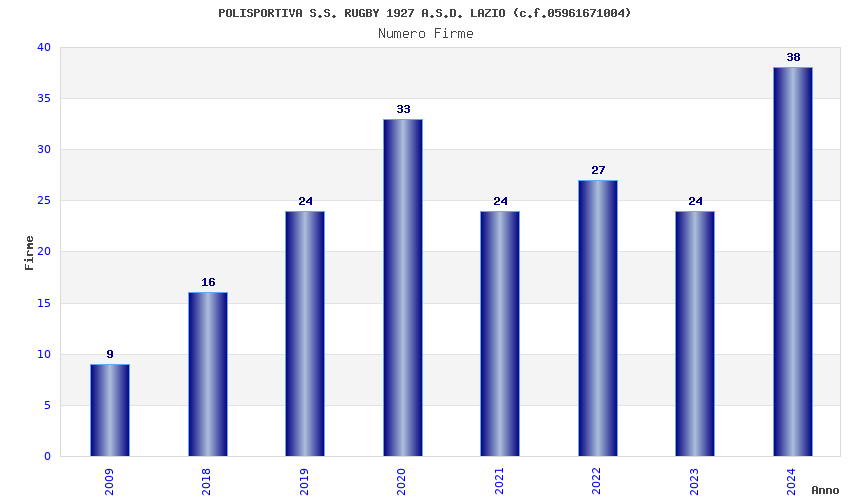| Anno | Firme | Importi | Media | Naz. | Reg. | Prov. | Comu. |