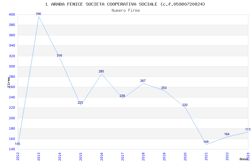 | 2013 | 396 | 5.591,13 | 14,12 | 7.728 | 422 | 119 | 2 |