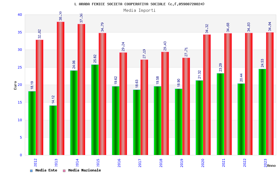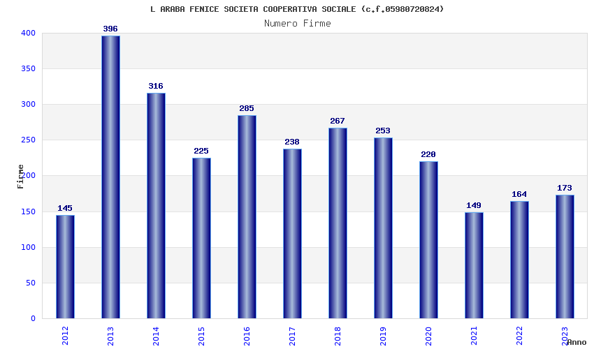 | Anno | Firme | Importi | Media | Naz. | Reg. | Prov. | Comu. |