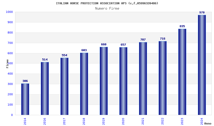 | Anno | Firme | Importi | Media | Naz. | Reg. | Prov. | Comu. |