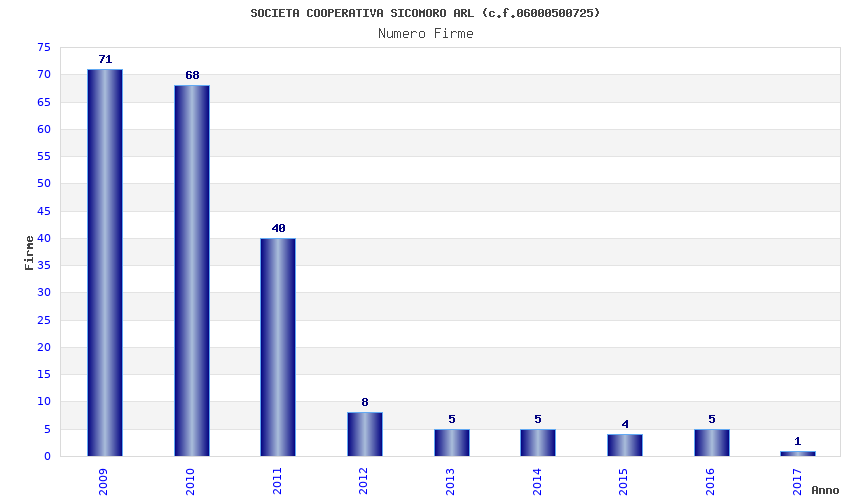 | Anno | Firme | Importi | Media | Naz. | Reg. | Prov. | Comu. |