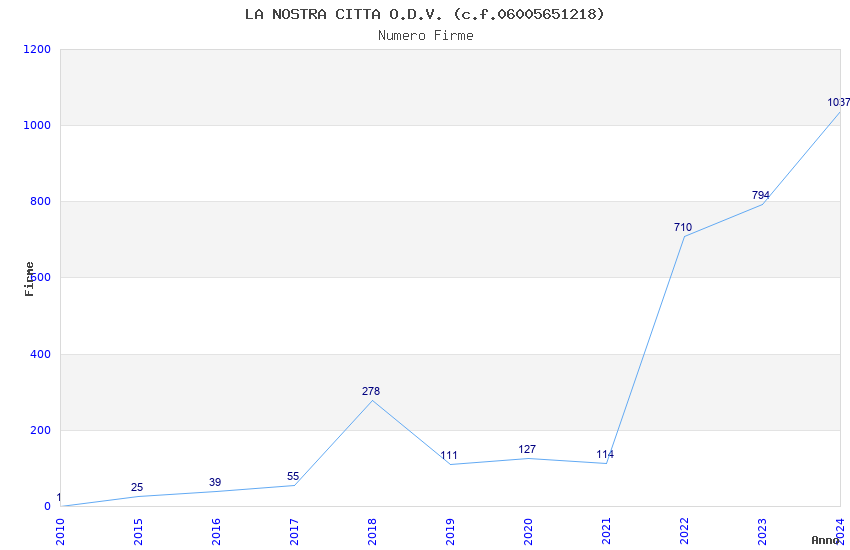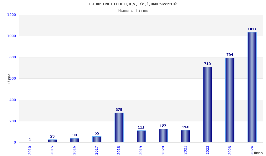 | Anno | Firme | Importi | Media | Naz. | Reg. | Prov. | Comu. |