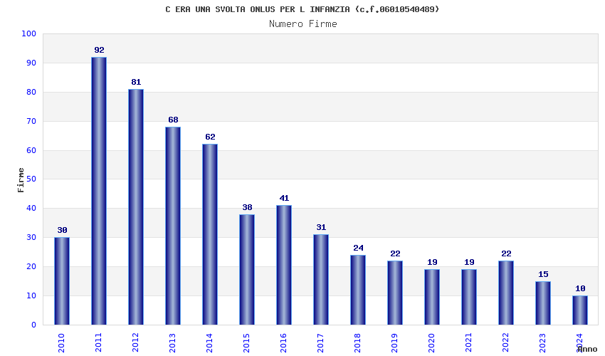 | Anno | Firme | Importi | Media | Naz. | Reg. | Prov. | Comu. |