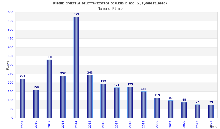 | Anno | Firme | Importi | Media | Naz. | Reg. | Prov. | Comu. |