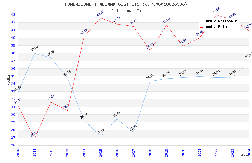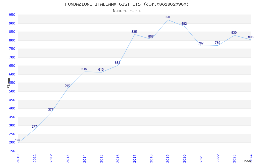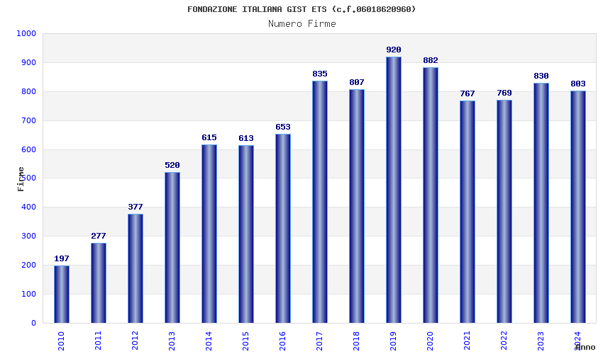 | Anno | Firme | Importi | Media | Naz. | Reg. | Prov. | Comu. |