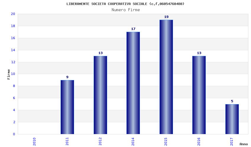 | Anno | Firme | Importi | Media | Naz. | Reg. | Prov. | Comu. |