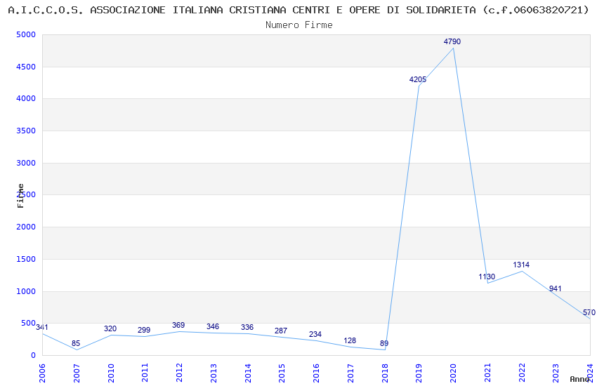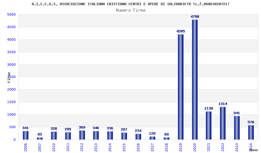 | Anno | Firme | Importi | Media | Naz. | Reg. | Prov. | Comu. |