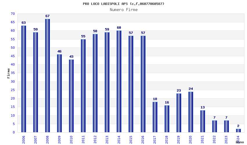| Anno | Firme | Importi | Media | Naz. | Reg. | Prov. | Comu. |