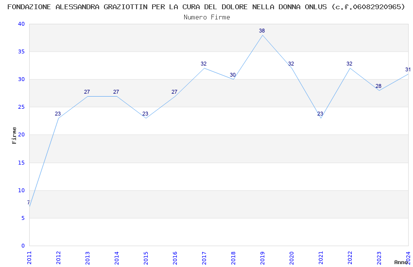| Anno | Firme | Importi | Media | Naz. | Reg. | Prov. | Comu. |