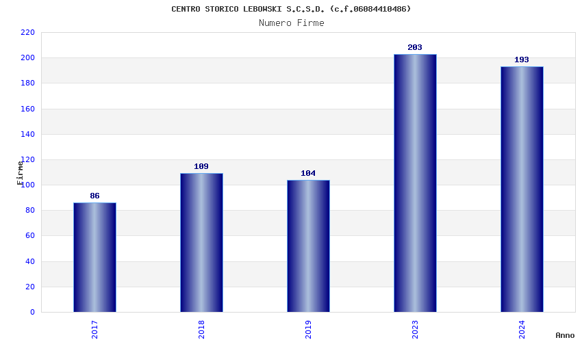 | Anno | Firme | Importi | Media | Naz. | Reg. | Prov. | Comu. |