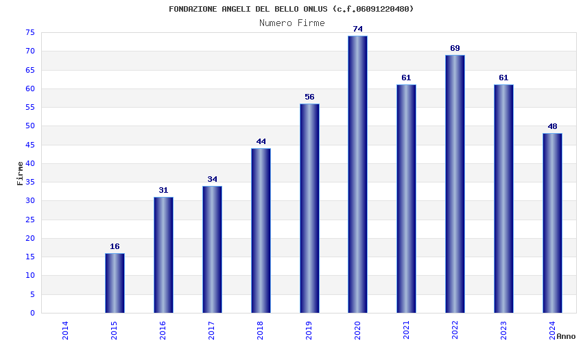 | Anno | Firme | Importi | Media | Naz. | Reg. | Prov. | Comu. |
