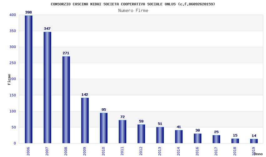 | Anno | Firme | Importi | Media | Naz. | Reg. | Prov. | Comu. |