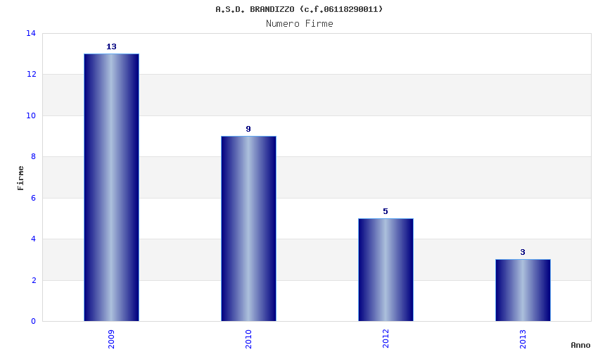 | Anno | Firme | Importi | Media | Naz. | Reg. | Prov. | Comu. |