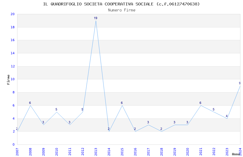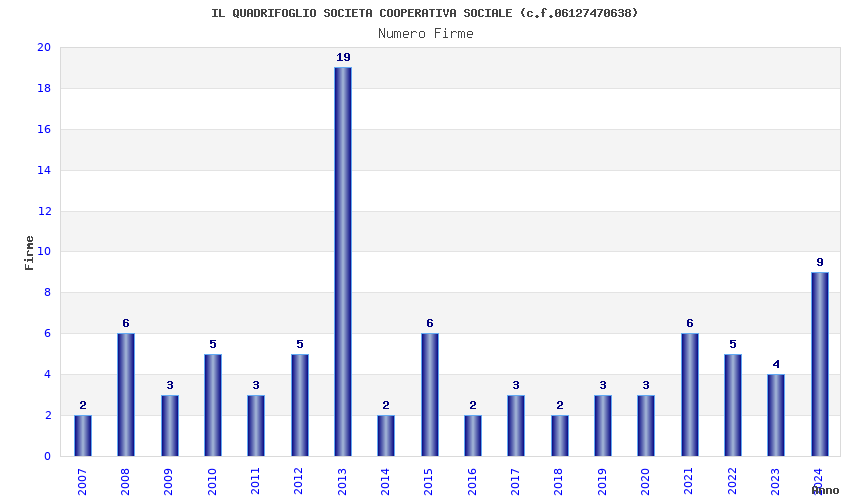 | Anno | Firme | Importi | Media | Naz. | Reg. | Prov. | Comu. |