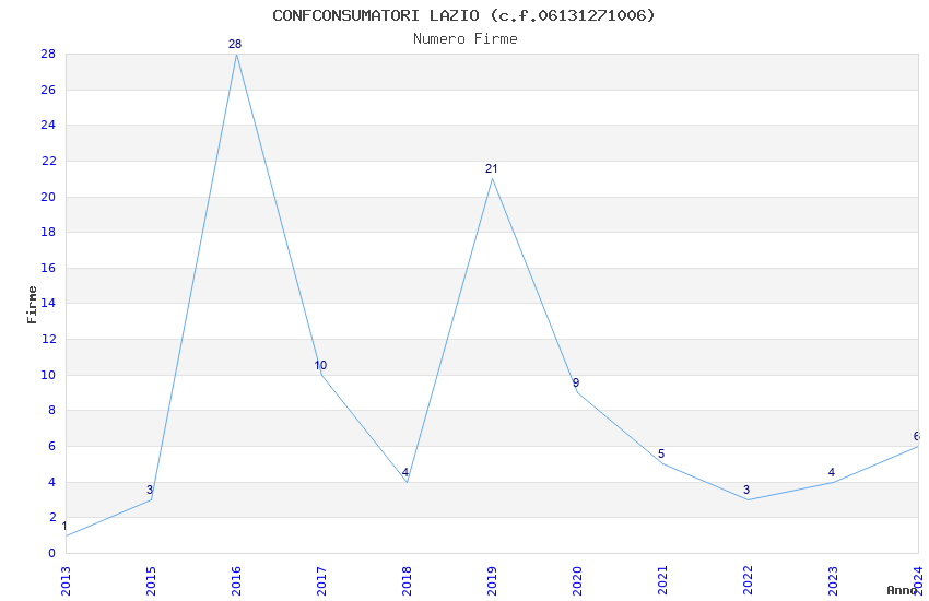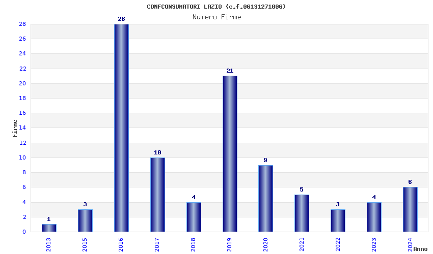 | Anno | Firme | Importi | Media | Naz. | Reg. | Prov. | Comu. |