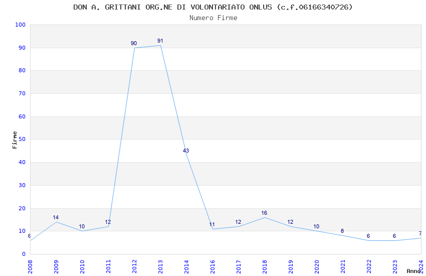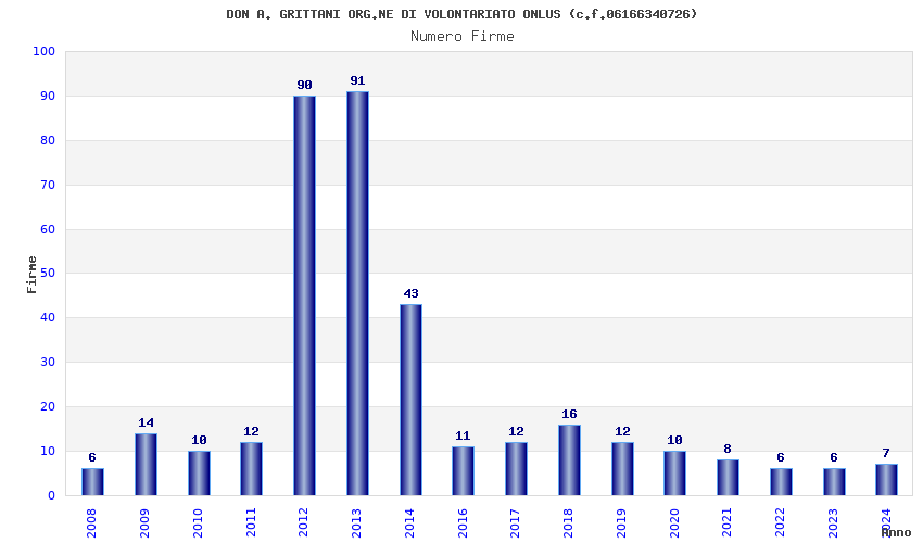 | Anno | Firme | Importi | Media | Naz. | Reg. | Prov. | Comu. |